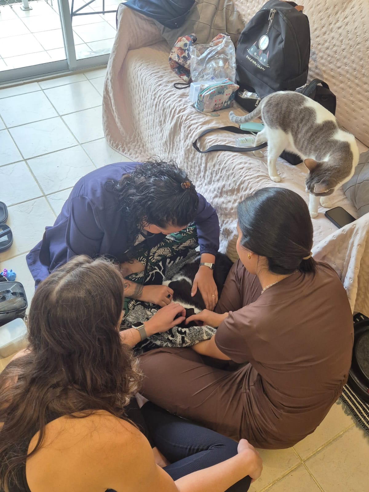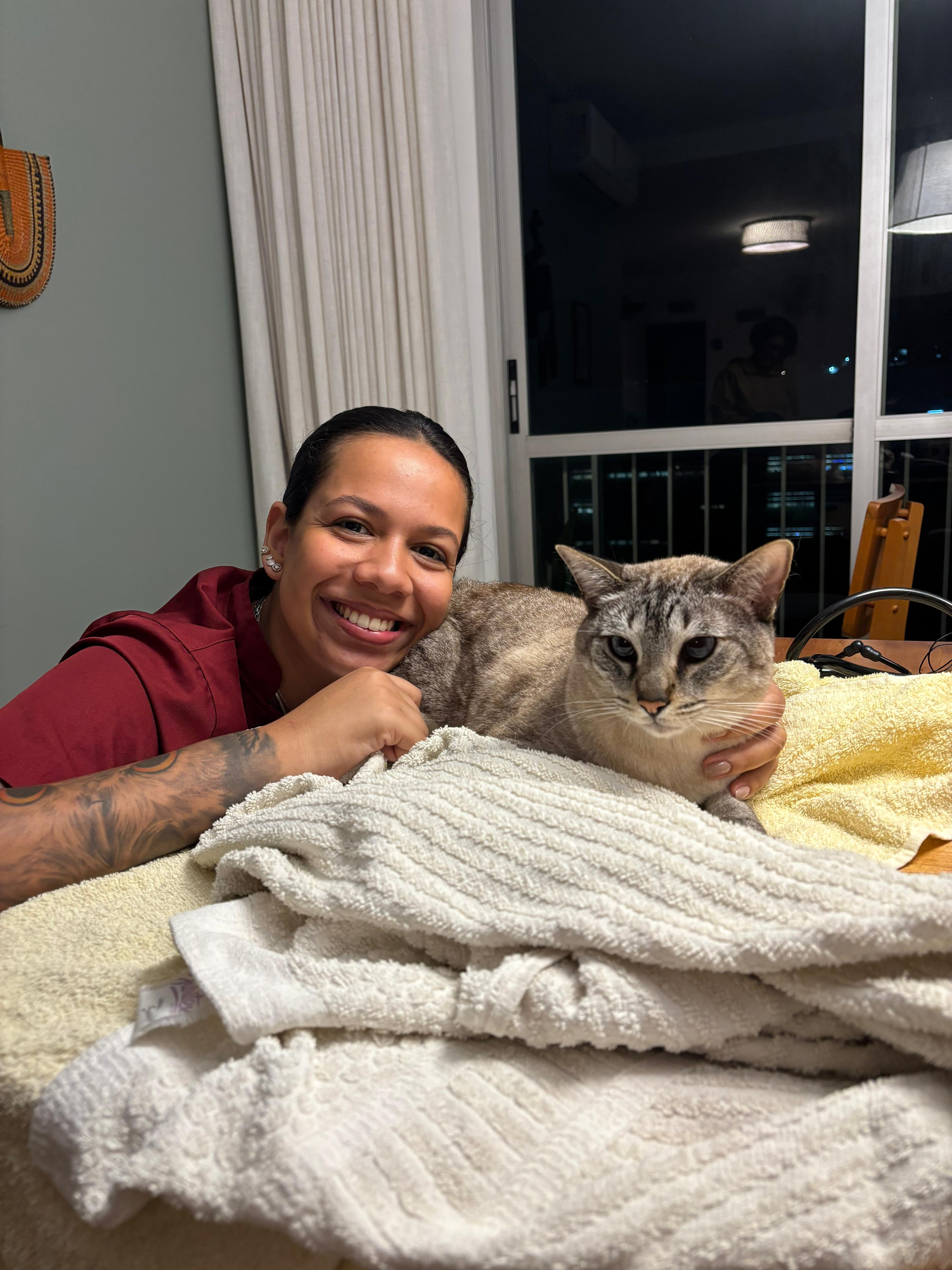 Pacientes da Ronrom ou de veterinários parceiros contam com nossa equipe de auxiliares veterinários em todos os momentos, até nos mais difícies, na casa do gato!